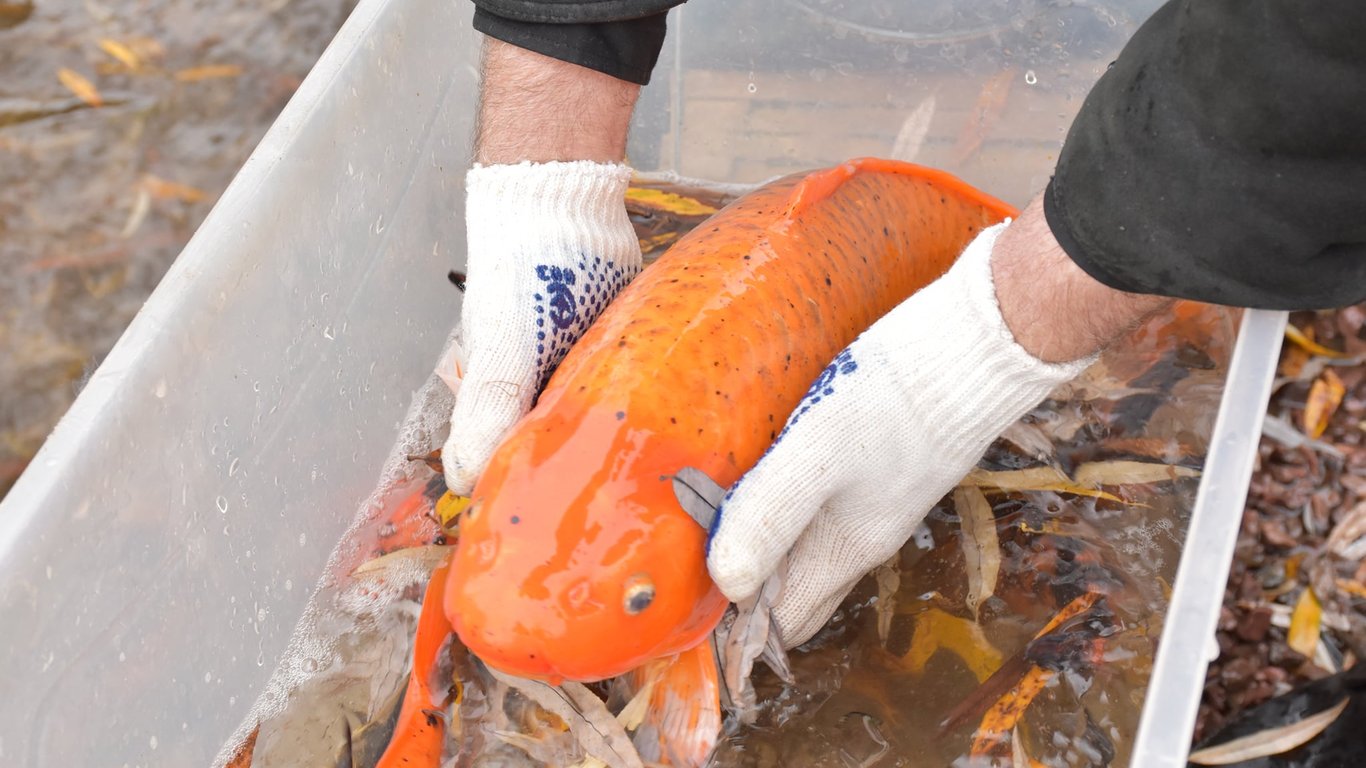 В Одесском зоопарке в связи с подготовкой к зимнему периоду из пруда забрали рыбок Кои.