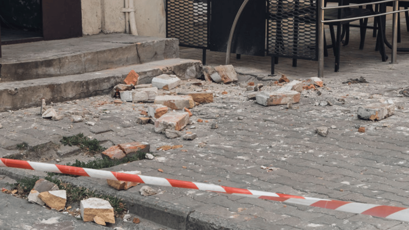 В центре Одессы снова упал фасад: его части разбросало по дороге. Видео