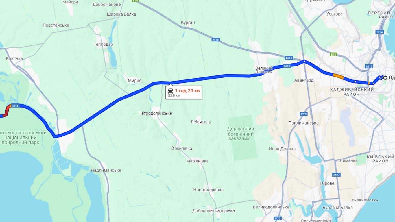 Сейчас в сторону Паланки есть небольшое скопление автотранспорта, на въезде в Одессу, Большом Дальнике и перед КПП, расположенном в пределах Нижнеднестровского национального природного парка, там очередь достигает менее полукилометра. Этот участок на картах обозначен красным цветом. Перед самым пунктом наблюдаются очереди.