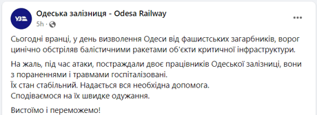 В результате обстрела Одесчины пострадали железнодорожники — подробности