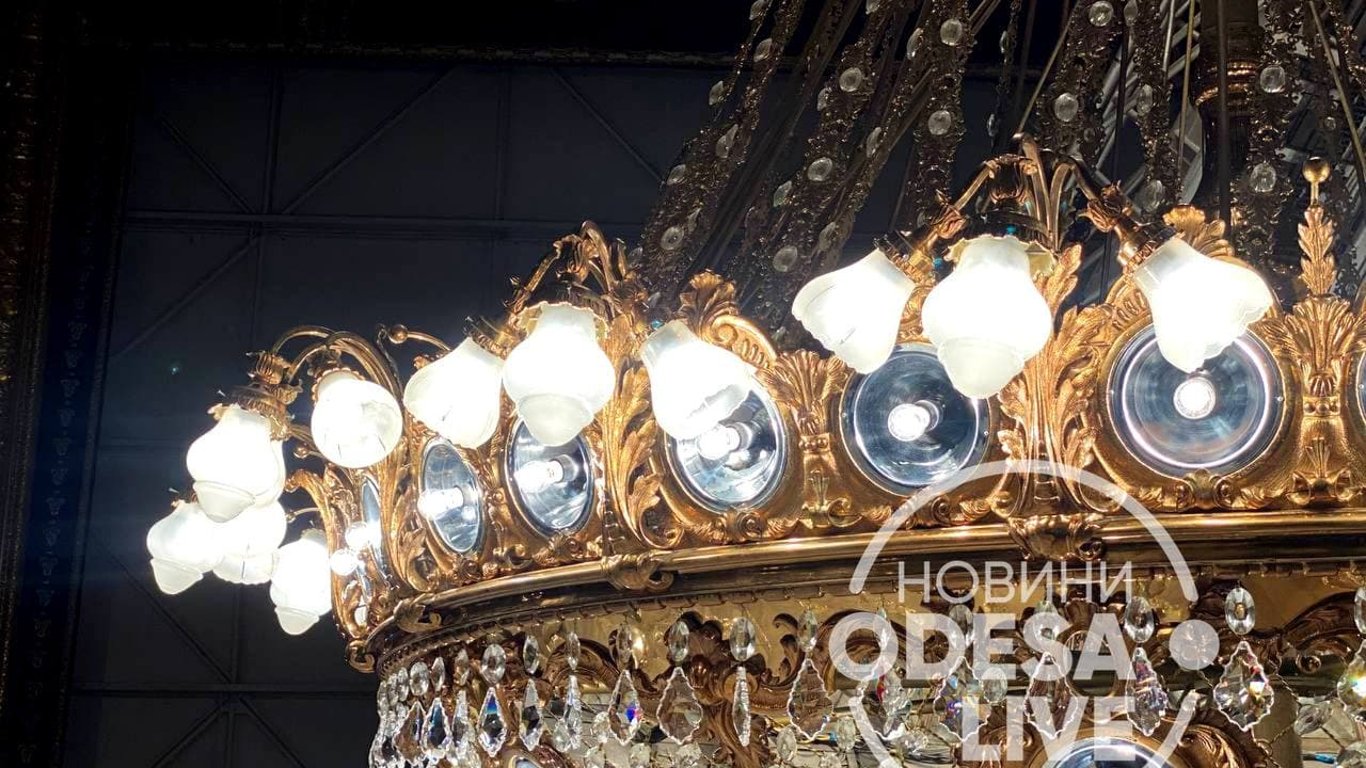 В Одесском оперном театре устроили чистку люстры в концертном зале.