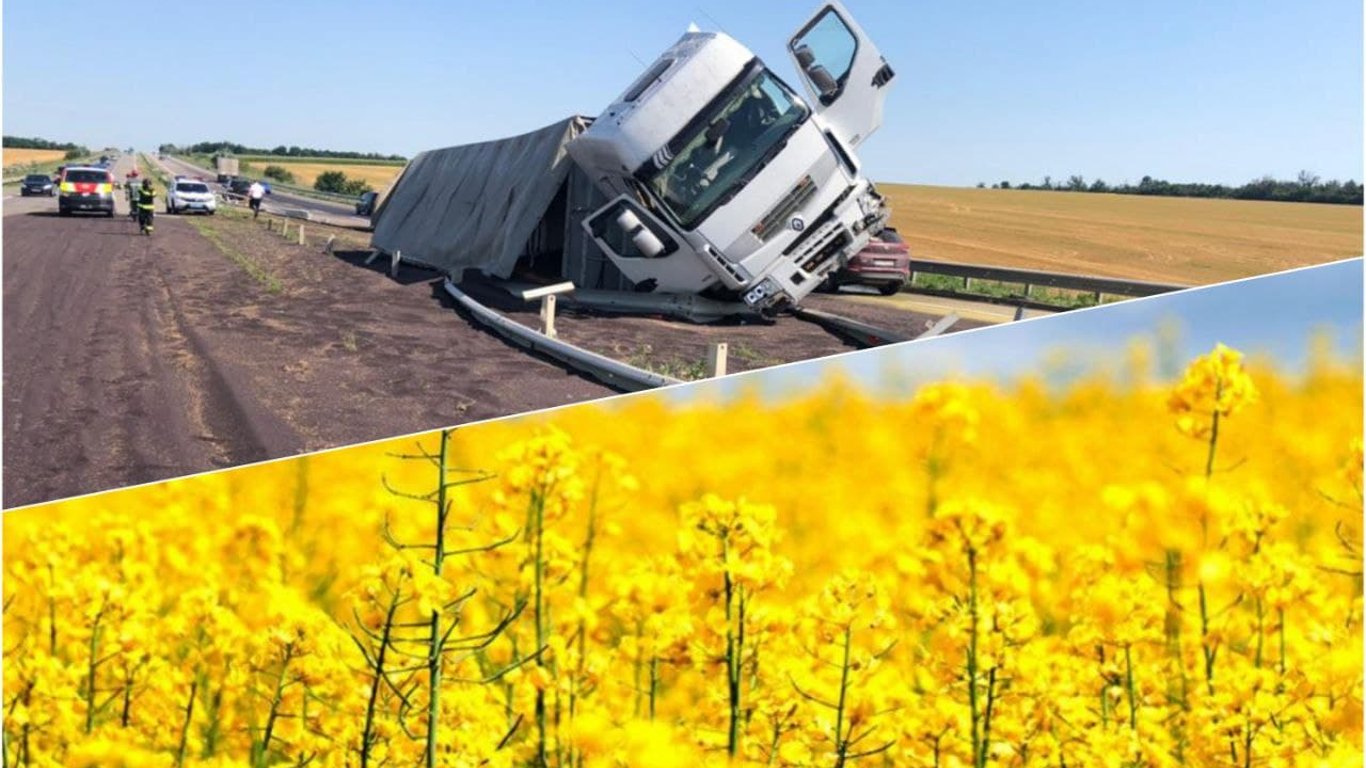 Вся трасса завалена рапсом: под Одессой перевернулся грузовик. Фото