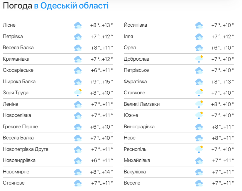 - Облачная погода продержится весь день. Местами возможен дождь.