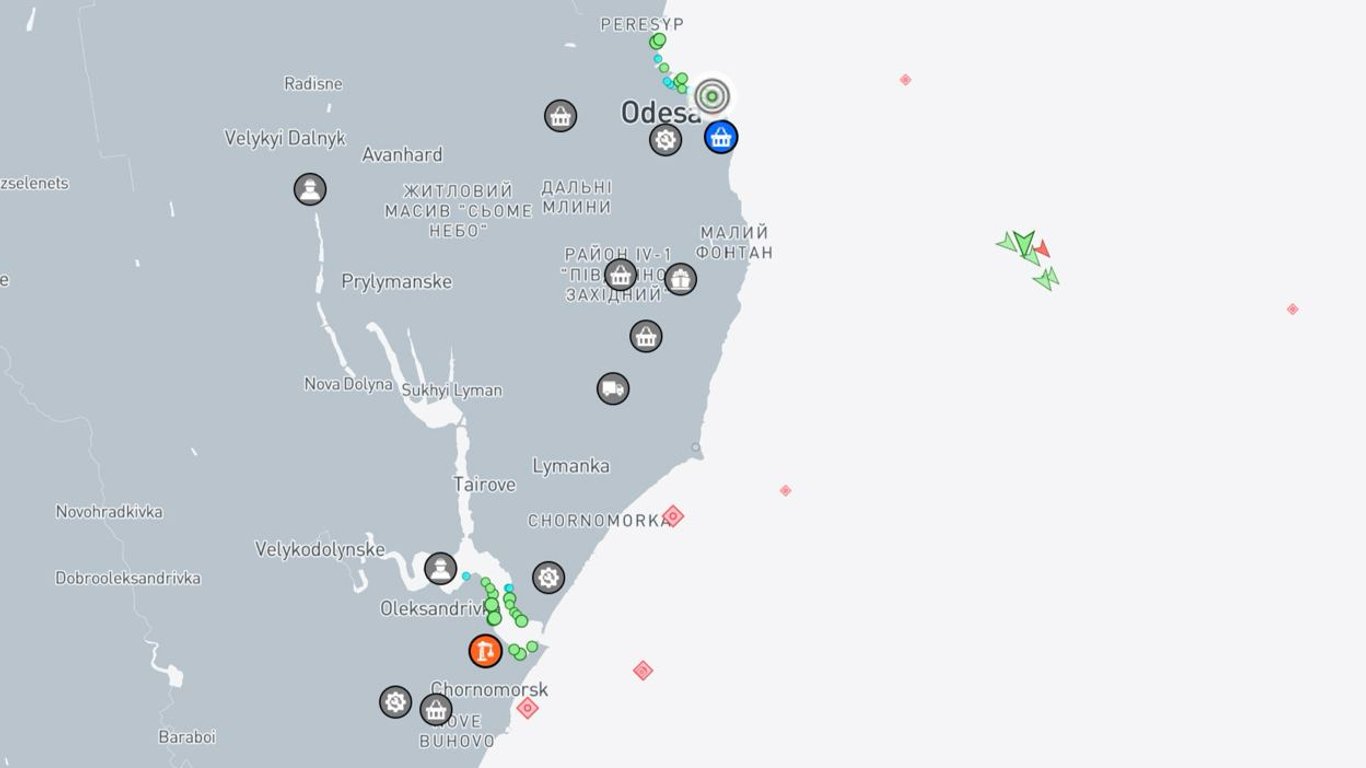 Пока известно, что в порту Одессы стоят 15 судов, еще 14 — в Черноморске, и 4 — в Южном. Кроме того, еще 5 судов следуют на выход из портов, а на вход известно пока о 12 кораблях.