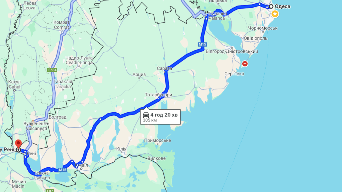Сейчас в сторону Паланки есть небольшая пробка на выезде из Одессы и перед КПП, которая находится в пределах Нижнеднестровского национального природного парка, там очередь достигает около одного километра. Этот участок на картах обозначен красным цветом. Перед самым пунктом пропуска небольшая очередь.