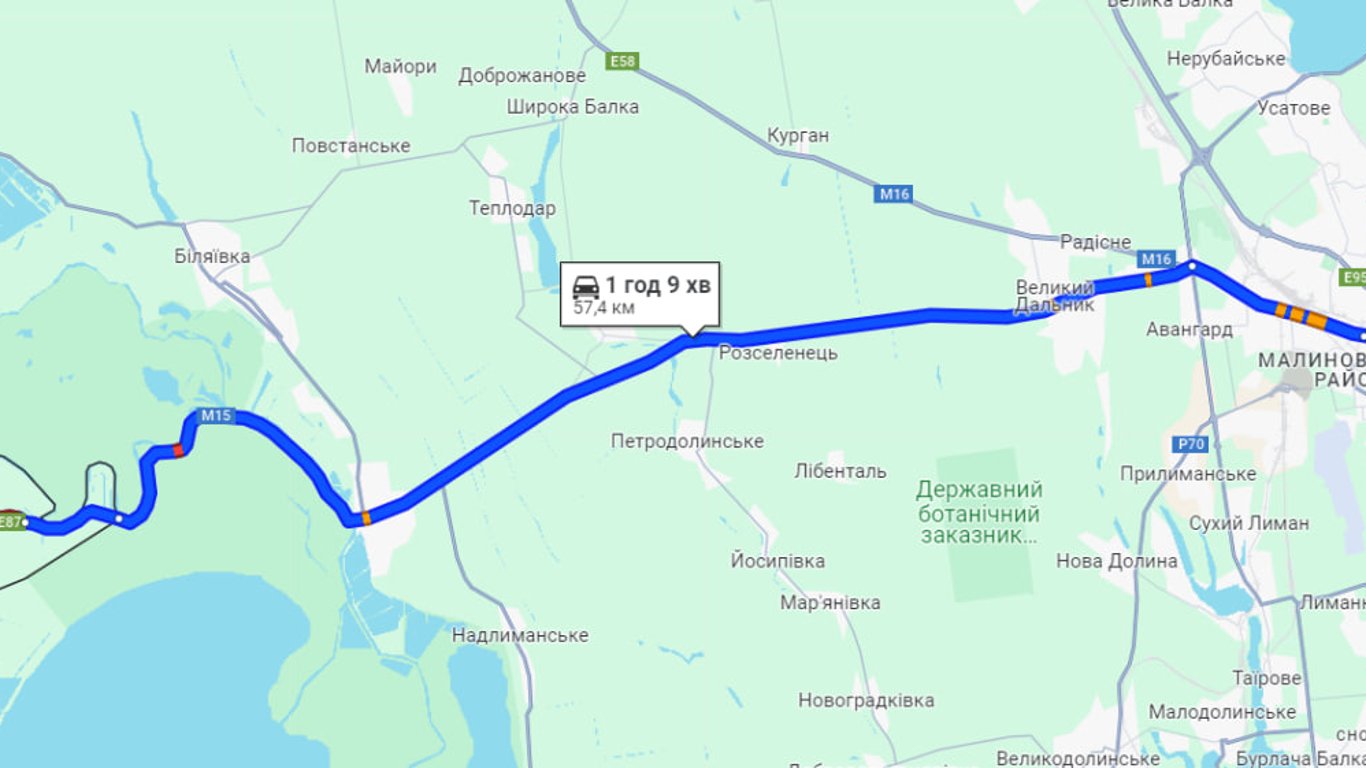 В сторону пункта пропуска "Паланка — Маяки — Удобное" есть пробка в районе природного парка и молдавского КПП. Этот участок на картах обозначен красным цветом. Путешествие в Паланку продлится сегодня 1 час 9 минут. Наблюдают очереди авто на автомобильном пункте пропуска.