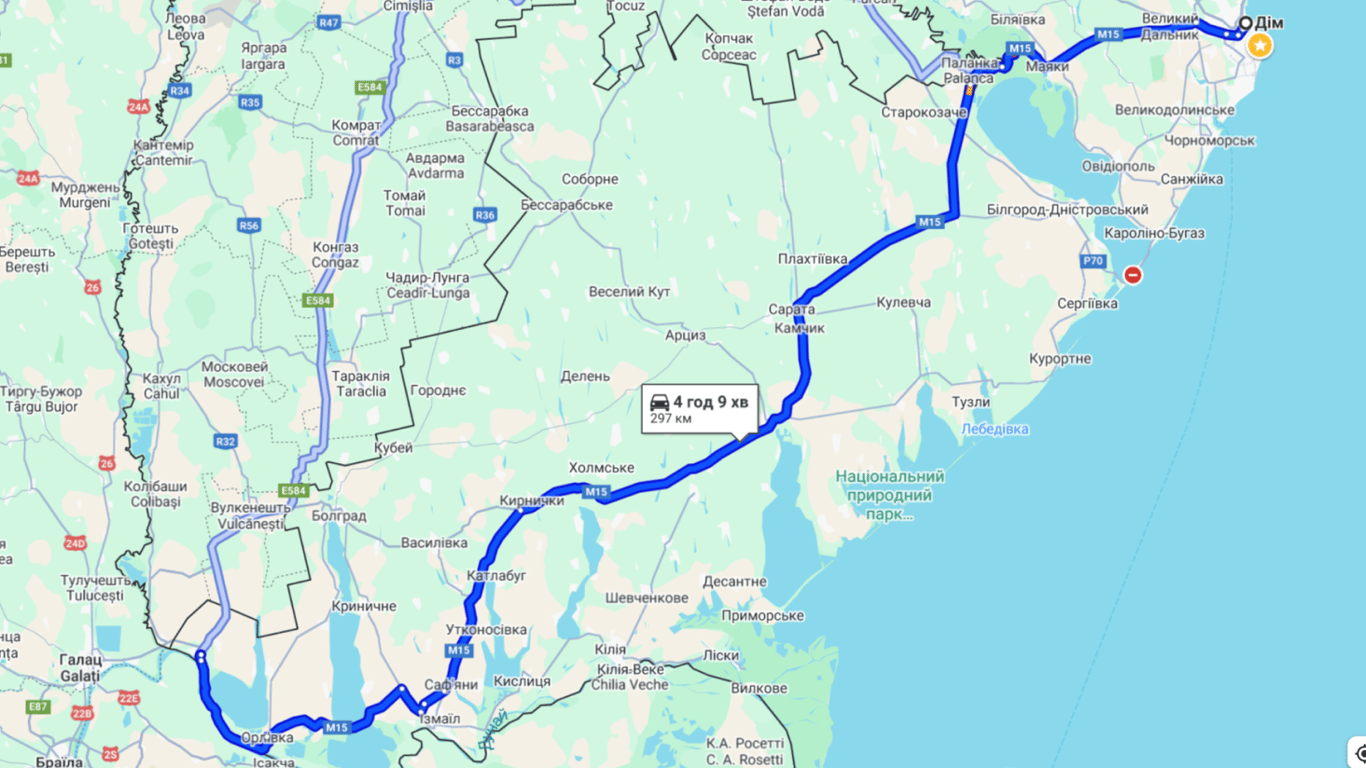 Сейчас в сторону Паланки наблюдается скопление автотранспорта в селе Маяки и перед КПП, расположенном в пределах Нижнеднестровского национального природного парка, там очередь достигает несколько километров. Этот участок на картах обозначен красным цветом. Перед самым пунктом тоже очередь, кроме этого произошла авария.