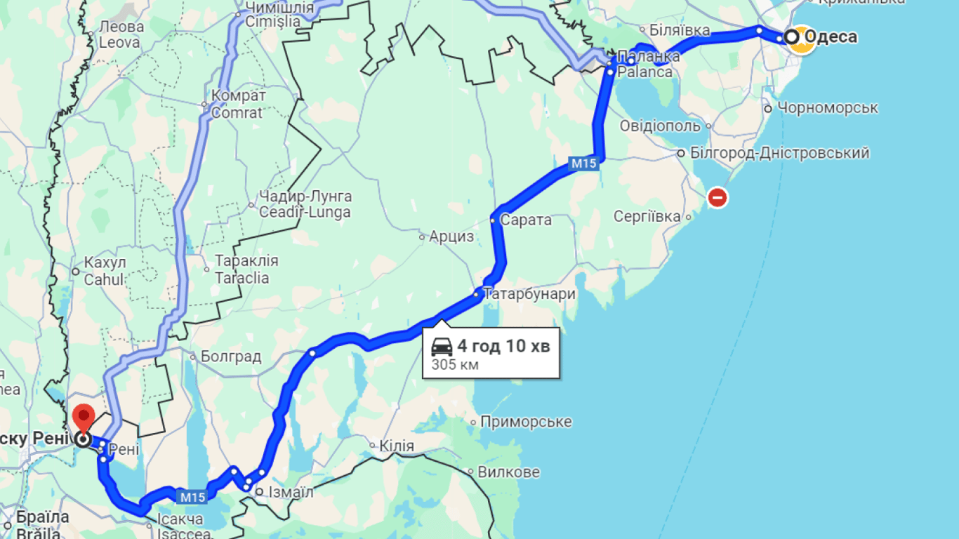 На іншому пункті пропуску "Рені — Джюрджюлешть" ситуація інша: черг на перетин кордону з Молдовою немає, однак на в’їзді до України утворився затор, позначений червоним кольором на картах.