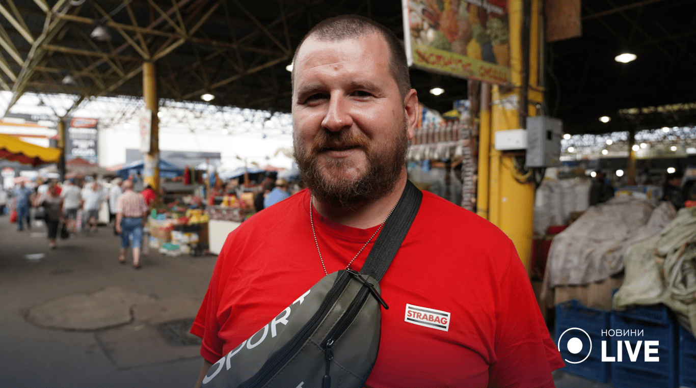 В деяких одеських родинах із покоління в покоління традиційно раз на тиждень чоловіки самостійно йдуть на базар та роблять закупи основних продуктів. Сьогодні ми зустріли на ринку "Привоз" одесита Андрія. Чоловік вже встиг пройтися основними овочевими й м’ясними рядами та поспішає додому, аби приготувати смачну страву.