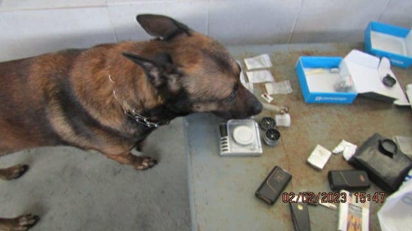 Чотирилапий помічник митників Пірат спрацював на валізу з особистими речами. В ній знаходилися три поліетиленових пакунки з амфетаміном, пластикова пляшка з марихуаною та скляна трубка для її вживання, а також LSD у вигляді 3 паперових квадратиків, які називають "марками", та 4 фрагментів марок.
