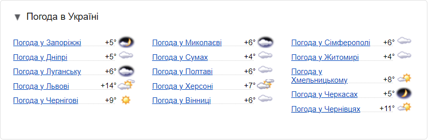 У столиці опадів також не передбачається — весь день буде сонячно, хіба іноді сонце закриватимуть невеличкі хмари.