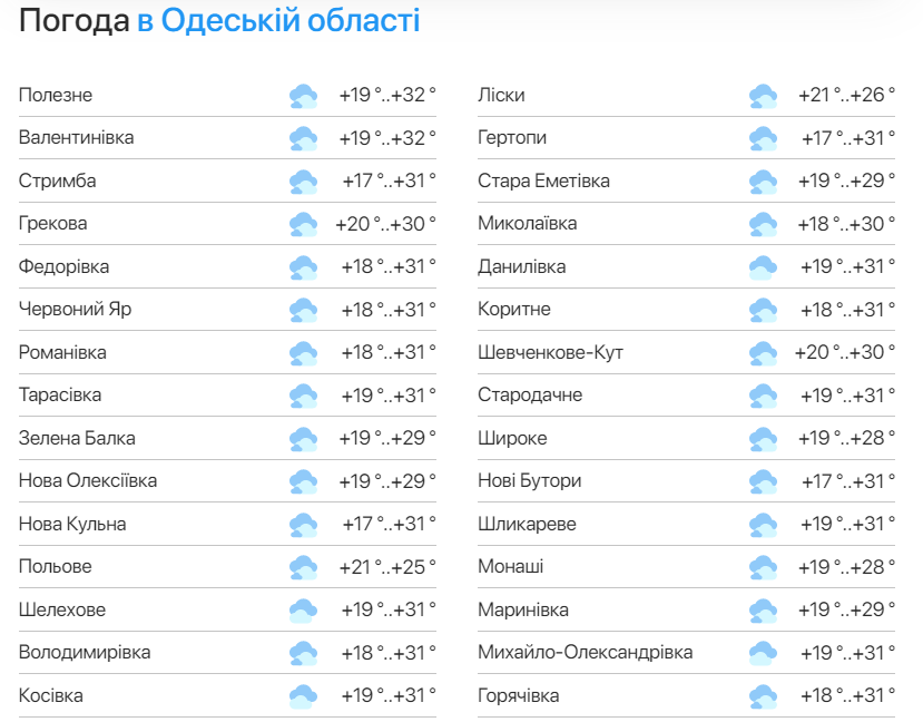 Сьогодні в Одесі від самого ранку небо вкриється хмарами, які протримаються до самого вечора. Удень, можливо, пройде дощ із грозою, але він закінчиться ще до приходу вечора.