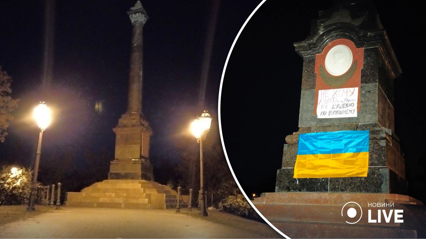 "Зовсім не хочу їхати з Одеси": на ще одному пам'ятнику в місті з'явилось послання