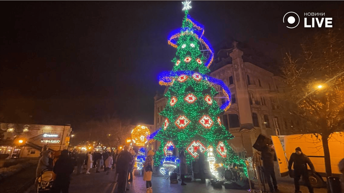 Сьогодні, 6 грудня, з нагоди Дня Святого Миколая, в Одесі урочисто запалили новорічну ялинку, яка другий рік поспіль розташовується на вулиці Дерибасівській. На святі виступали артисти з оркестром, які розважали малечу.