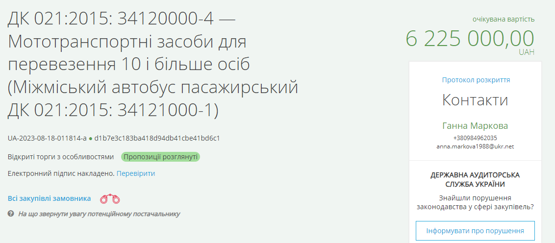 Про це Новини.LIVE дізналися із системи електронних закупівель Prozorro.