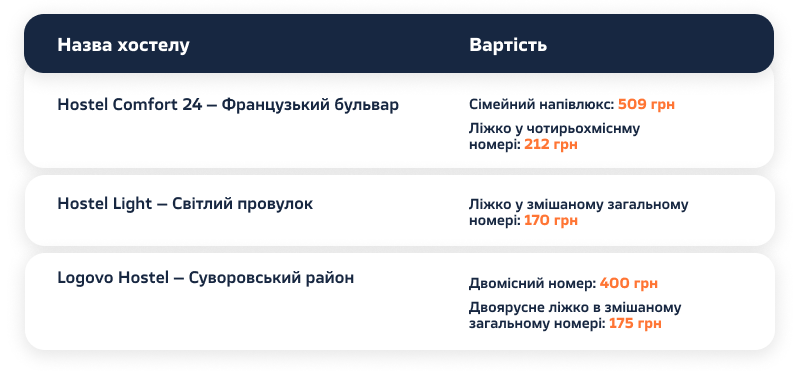 Для тих, хто шукає бюджетний варіант відпочинку в Одесі, найкраще підійдуть хостели. Їх вартість дуже приваблива, навіть у розпал сезону, і становить від 170 грн до 600 грн.