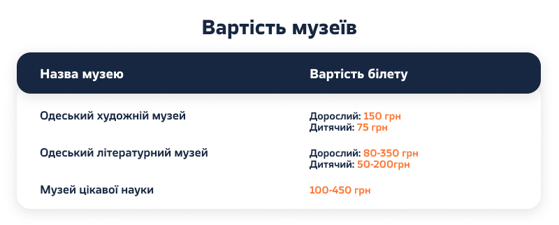 Більшість одеських музеїв працюють, але краще їх відвідувати у першій половині дня, тому що вони закриваються відносно рано.