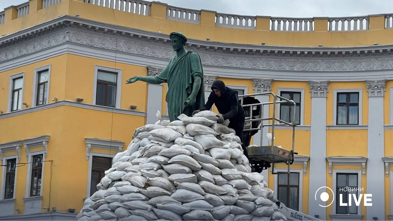 Але головна пам'ятка — Дюк де Рішельє — нині огороджена мішками, а доступ до нього, втім, як і на знамениті Потьомкінські сходи, закрито. На жаль, зробити фотографію біля Воронцовської колонади цього року також не вдасться.