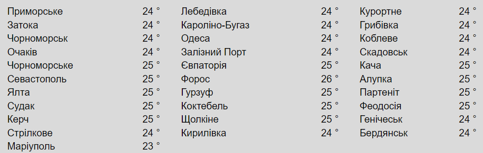 Сьогодні температура води в Одесі становить 24.7°C. Це найкомфортніша вода для купання в будь-якій водоймі, особливо в жаркий день. Даний температурний діапазон визнаний найоптимальнішим для тривалого купання. У будь-якому випадку важлива і загальна погода. Так, температура повітря водночас досягне 24°C.