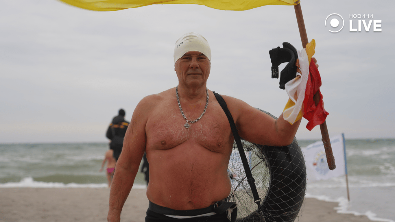 "Слава ЗСУ! Слава Україні! Наш заплив був для того, щоб показати, що Одеса — це Україна. Ми українське місто. Вода сьогодні дуже класна. Природа нам підіграє завжди, коли ми плаваємо з прапорами", — каже член "Клубу моржів" Іван Папушенко.
