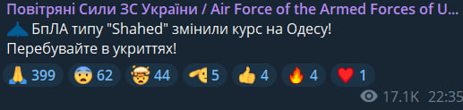 Про це повідомляють Повітряні сили ЗСУ та очільник Одеської ОВА Олег Кіпер.