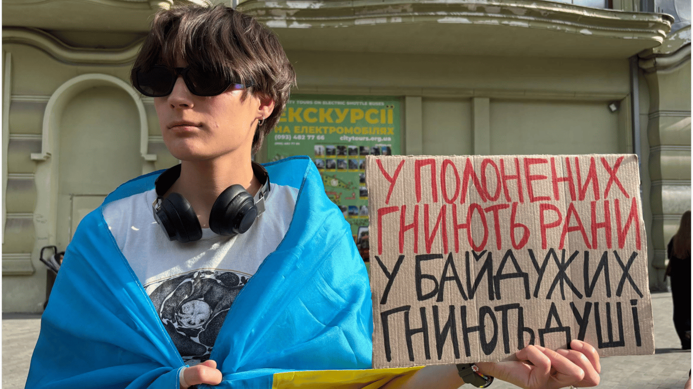 Організаторка акції Анна Пажера розповіла, що люди зібралися, аби нагадати про військових, які перебувають в російській неволі вже декілька років.