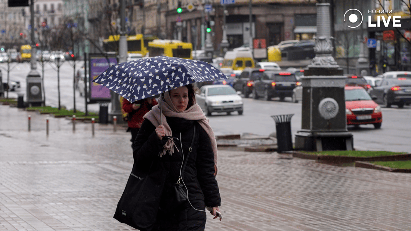 У центральній частині можливий дощ, подекуди на півдні та сході — навіть зі снігом. На півночі без істотних опадів.