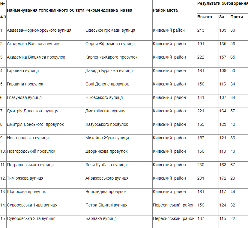 В Одесі завершилося голосування щодо перейменування вулиць. Загалом цього разу в переліку опинилося 39 топонімічних об'єктів міста.