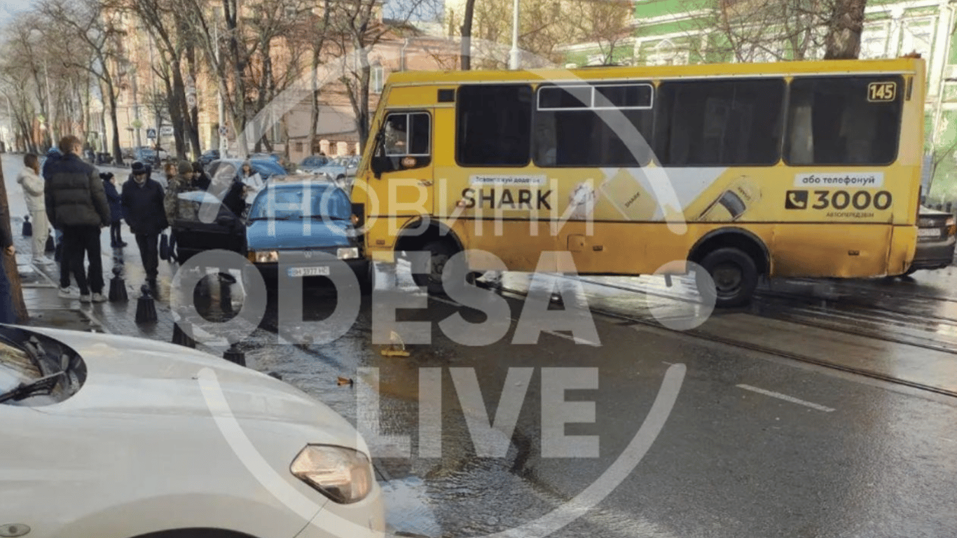 В центрі Одеси 29 листопада трапилася аварія. На розі Софіївської та Кінної зіткнулися маршрутка №145 та легковий автомобіль.