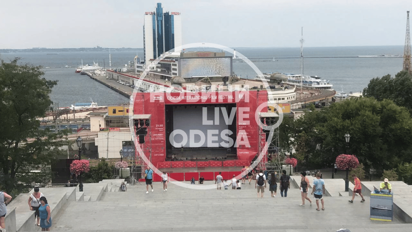 У центрі міста на Потьомкінських сходах відбудеться закриття 12-го Одеського міжнародного кінофестивалю. Вперше сцену встановлюють просто неба.
