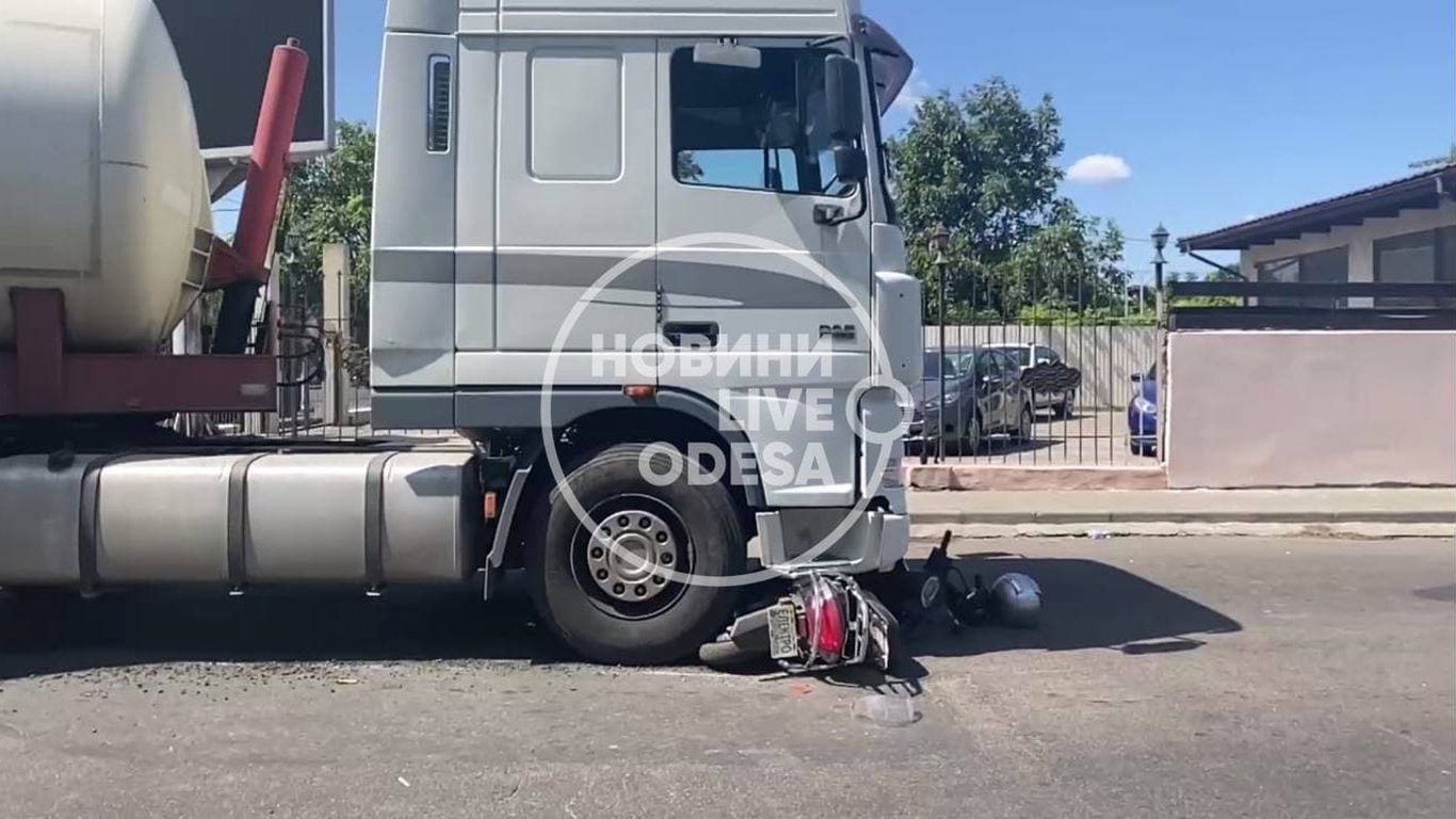 В Одесі на вулиці Святослава Ріхтера фура з цистерною наїхала на мотоцикліста. Відео