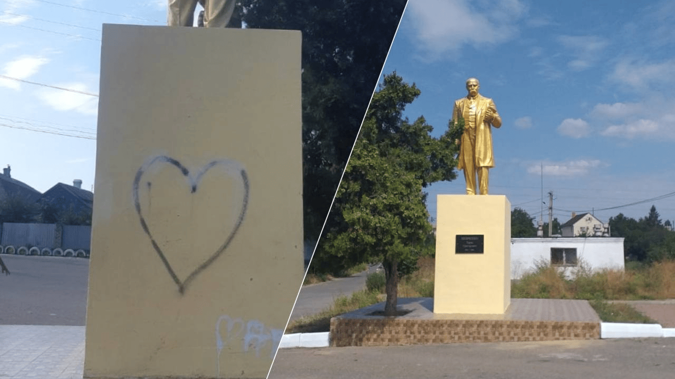 Невідомі залишили два "серця" на задній частині пам'ятнику. Також поруч красуються ще два малюнки, але вони менш розбірливі. Фахівці пофарбували постамент та привели пам’ятник в належний вигляд.