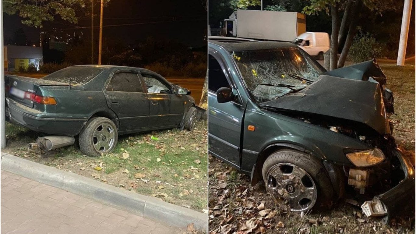 29 серпня в Одесі на вулиці Грушевського сталася руйнівна ДТП. Там, водій автівки Toyota Camry втратив кермування та влетів у дерево біля заправки WOG.