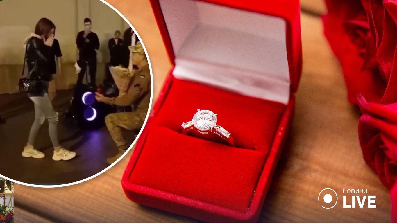 В Одесі військовий зворушливо освідчився коханій на Дерибасівській