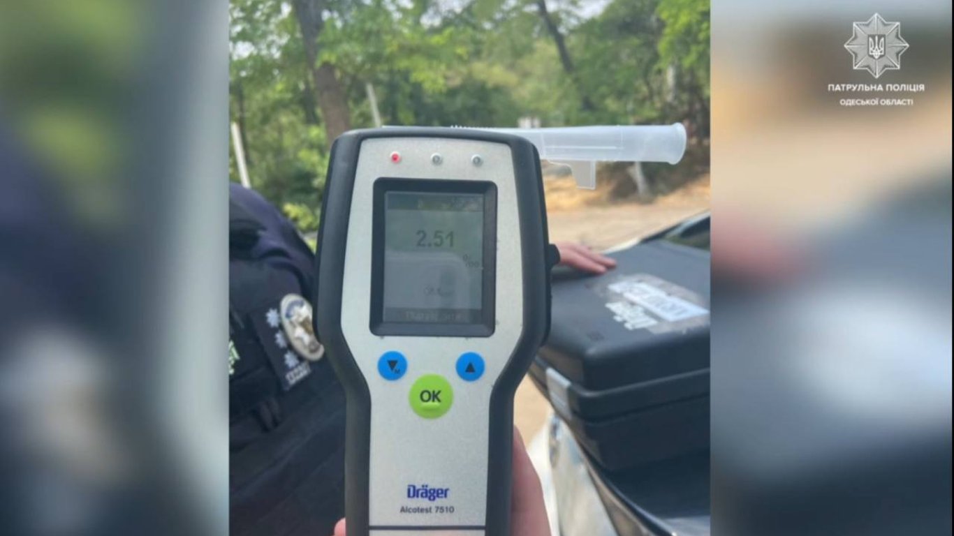 Порушником виявився 37-річний мешканець Одеси. Під час перевірки чоловіка на тверезість "Драгер" показав рекордний результат — 2,51 проміле, що в 13 разів вище за встановлену норму.