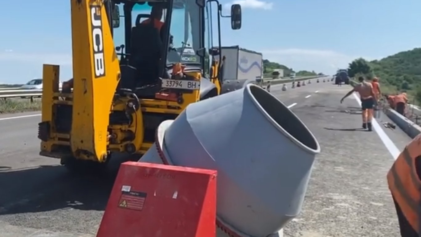 На трасі Київ-Одеса відремонтували ділятку дороги, де через дощі стався зсув ґрунту.