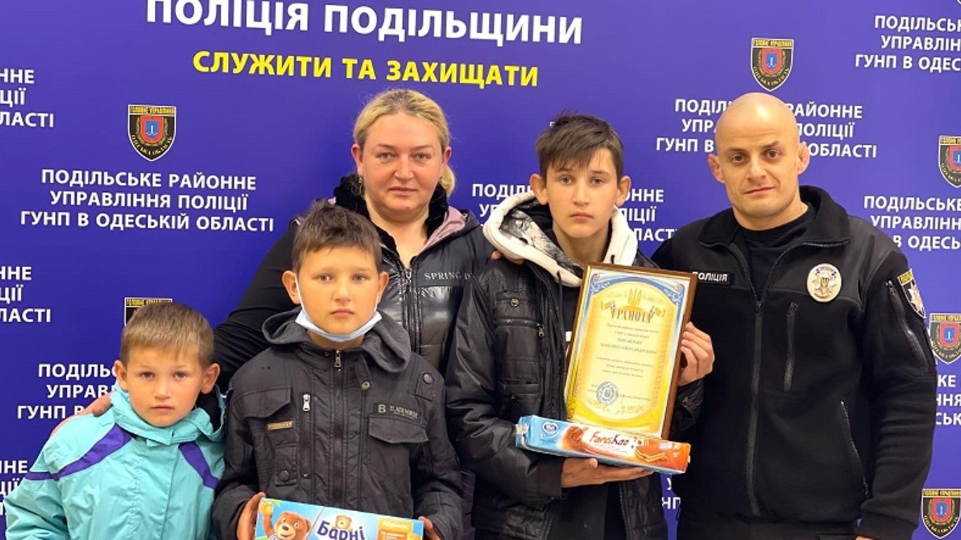 "Підлітка ж, завдяки якому вдалося швидко встановити його місце знаходження, начальник Подільського районного управління поліції Олександр Ноздратенко заохотив подарунком. А дізнавшись, що той мріє стати поліцейським, – запропонував долучитися до занять спортом та взяти участь у тренуваннях із самбо", – йдеться у повідомленні.
