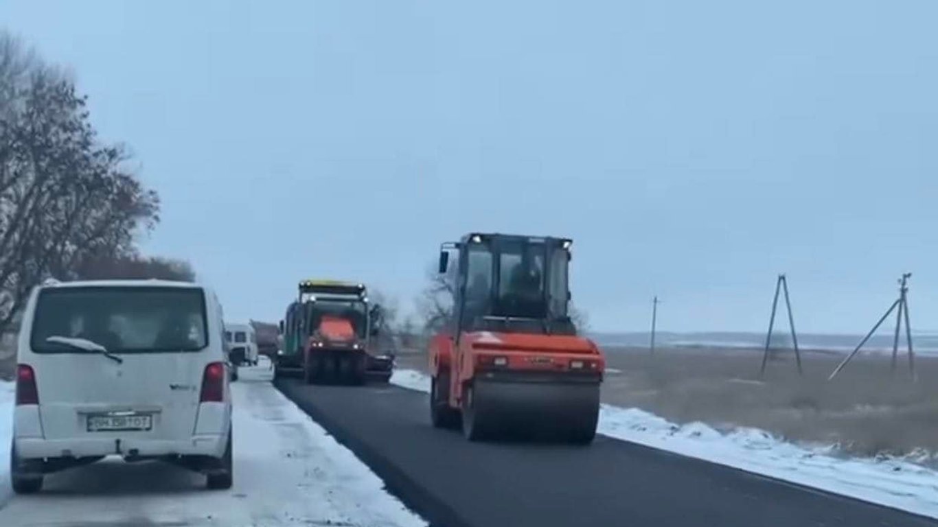 В Одеській області на трасі Т-16-27 КПП "Серпневе – Тарутино – Арциз – Сарата" побачили, як клали асфальт прямо на сніг. Підрядник ТОВ СК "Автострой" робив це 27 грудня під час інтенсивних опадів.