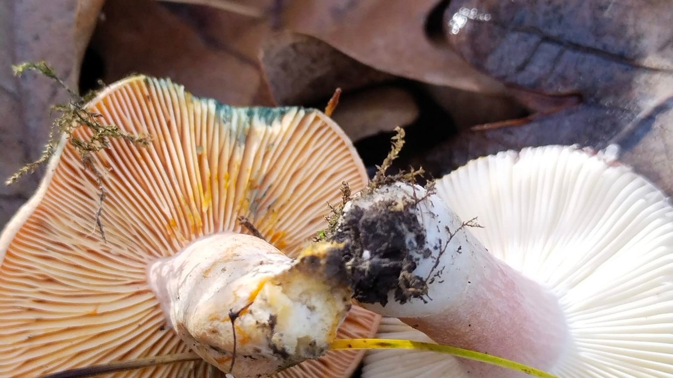 Останні осінні грибочки, які зараз показалися на території ботсаду, повністю безпечні. Яскраві фіолетові та світлі природні кольори добре зливаються із впалою листвою, завдяки цьому вони ховаються від потенційних ворогів.