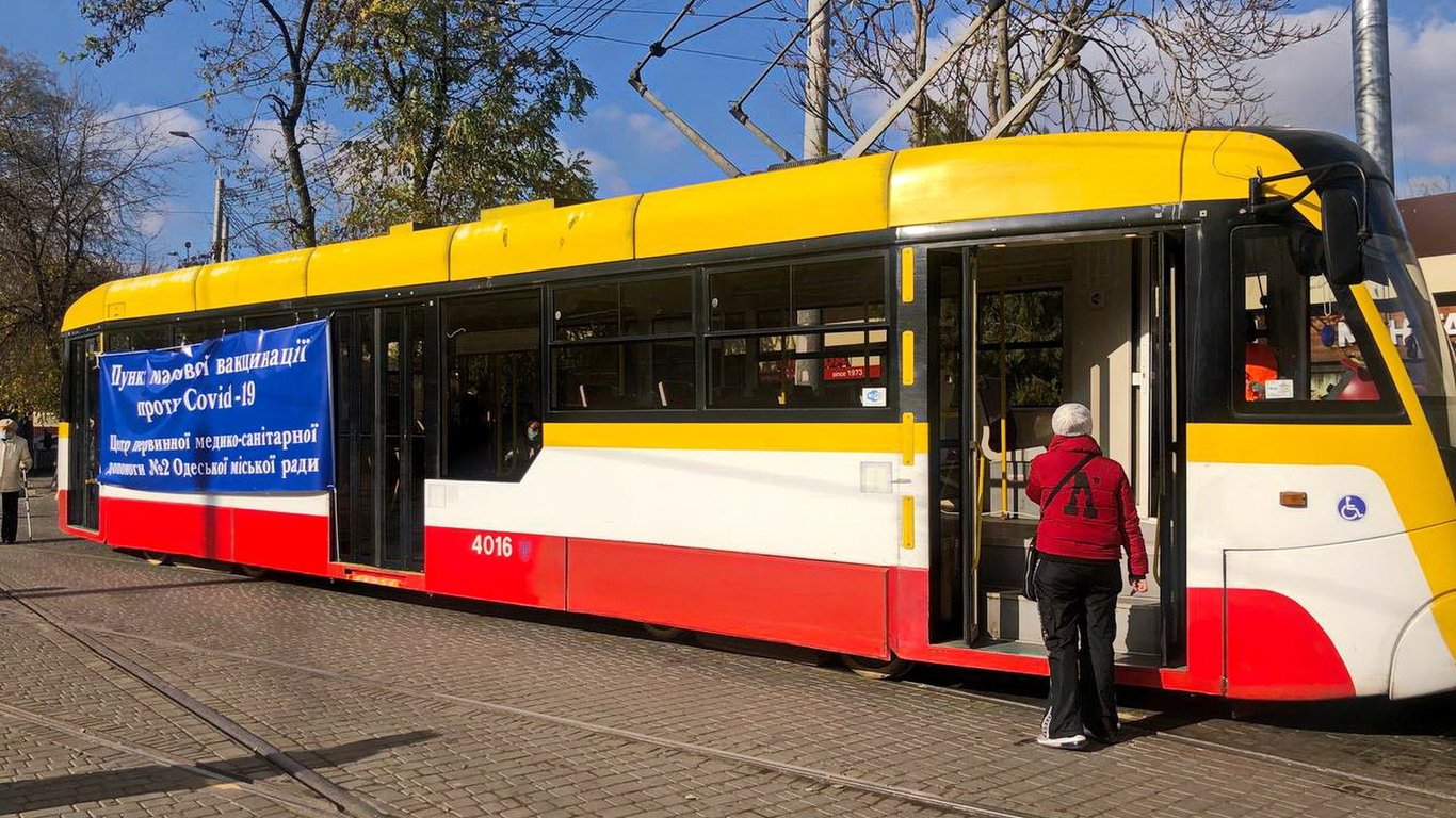 11 листопада в Одесі на рейки вийшов вакцинальний трамвай Odissey, у ньому можна зробити щеплення від COVID-19. Він розмістився на Старосінній площі, біля кінцевої зупинки трамваїв та автостанції.