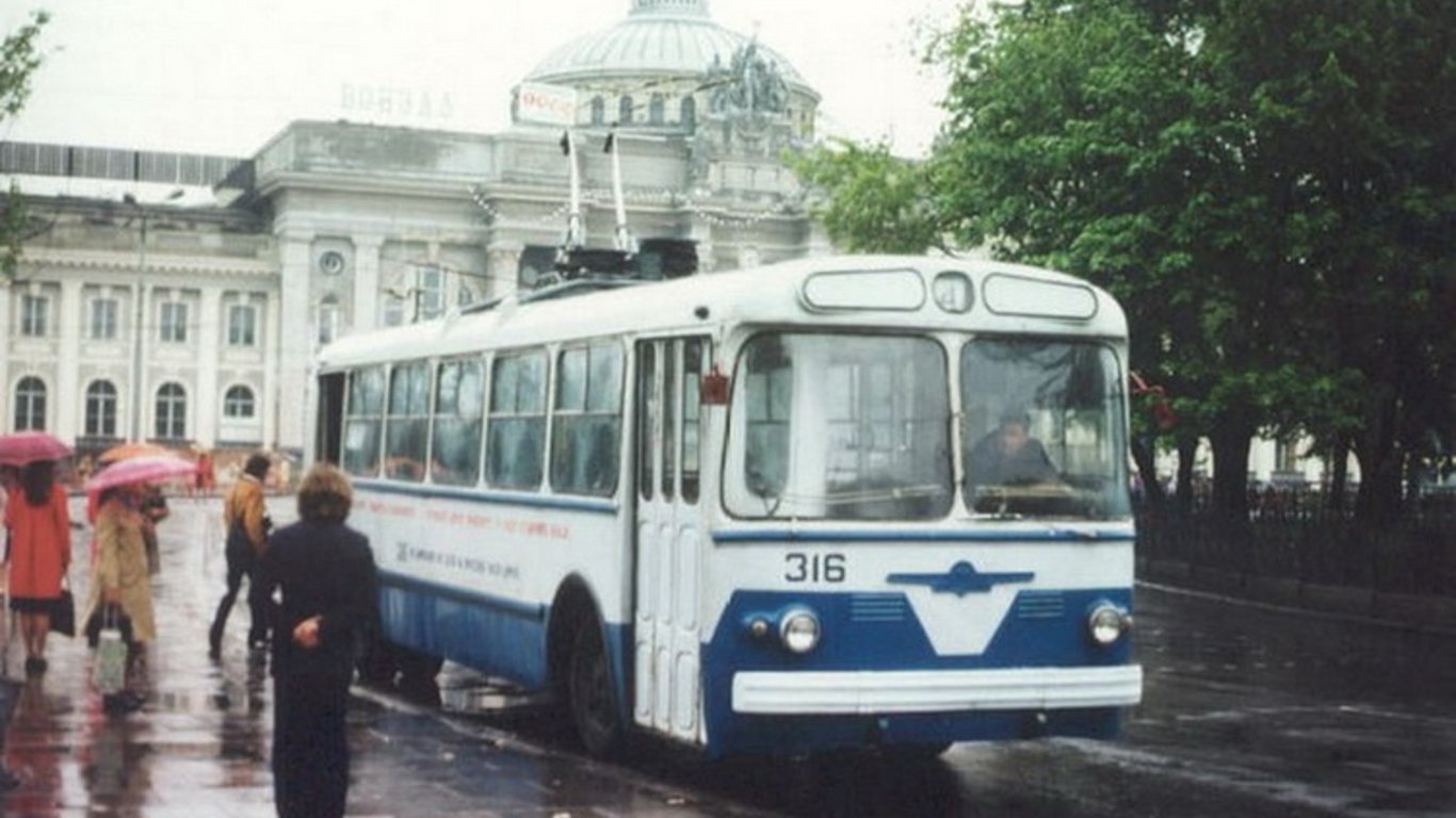 На фото видно старий тролейбус та людей на зупинці. Люди у коментарях почали між собою сперечатися, у які саме роки було зроблене фото.