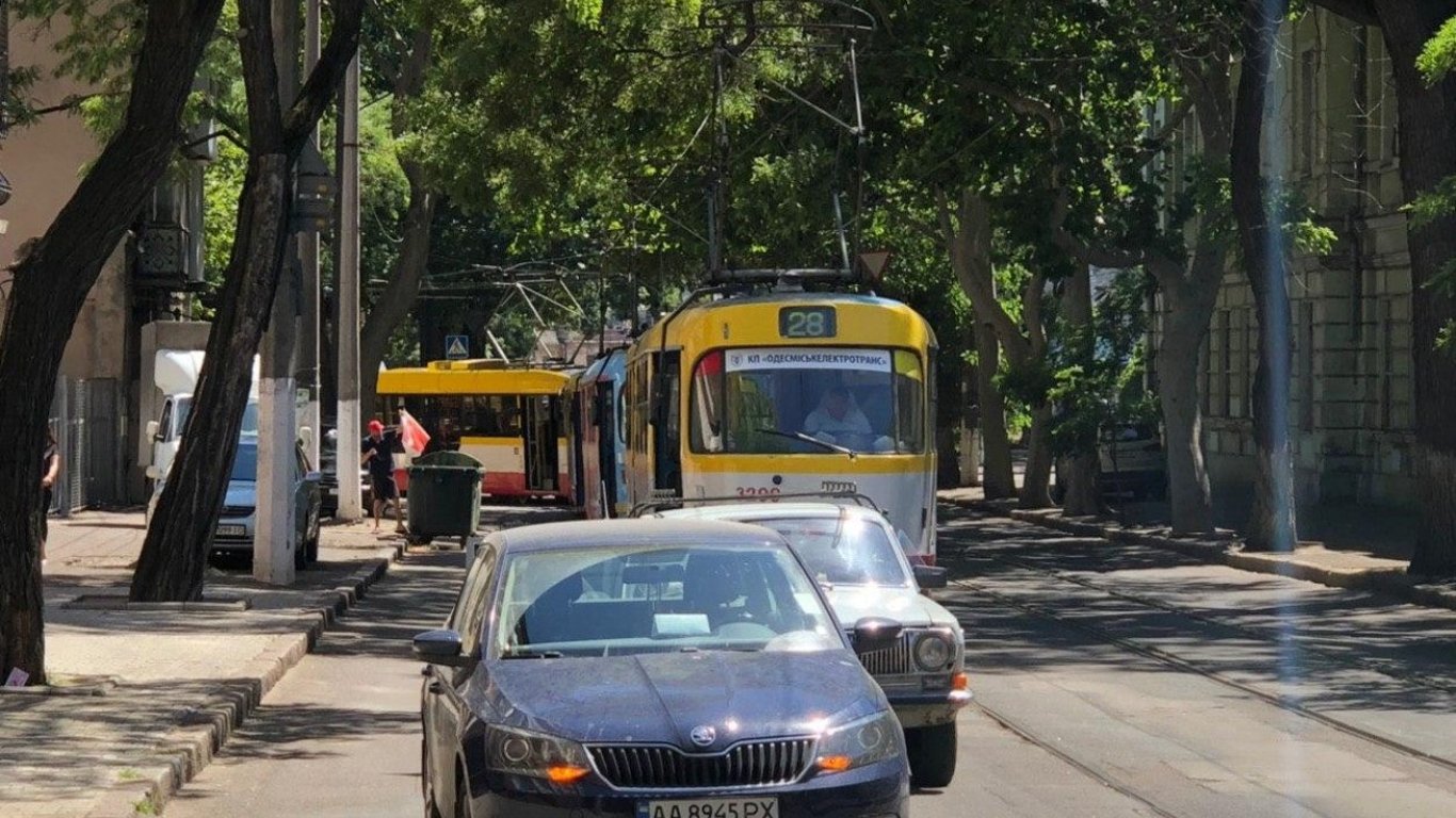 В центрі Одеси трамвай “наздогнав” легковика, який раптово зупинився посеред дороги
