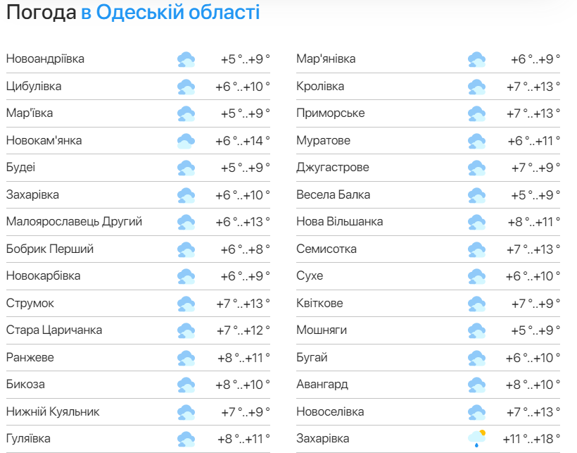 - Хмарна погода протримається весь день. Місцями можливий дощ.