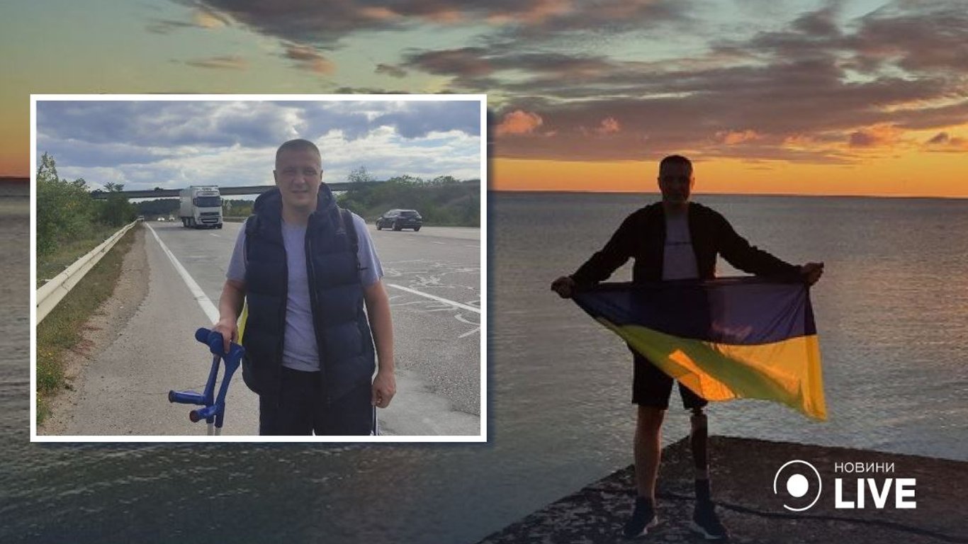 Ветеран АТО Олександр Швєцов йде на милицях з Одеси до Карпат, збираючи гроші на авто для ЗСУ