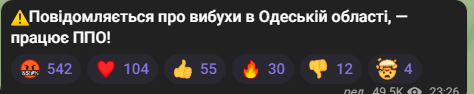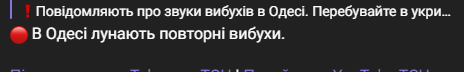 Інформують про вибухи в Одеській області.