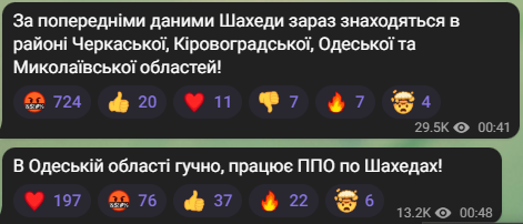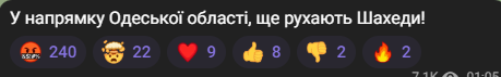 Моніторингові канали попереджають, що до Одеської області прямують ще "шахеди".