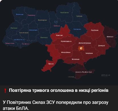 Наразі мапа повітряних тривог в Україні виглядає так: