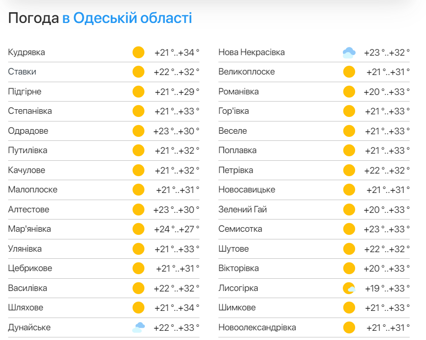 Прогноз погоди в Одеській області