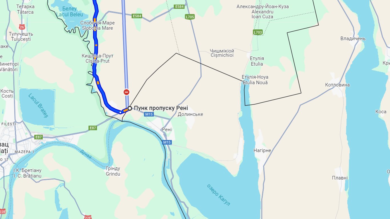 Наразі у бік пункту пропуску "Паланка — Маяки — Удобне" є великий затор перед КПП. На останній ділянці він сягає декількох кілометрів, тому рух транспорту дуже ускладнений. За даними сервісу, подорож до Паланки триватиме сьогодні більше двох годин. Ділянка до КПП "Старокозаче — Тудора" наразі майже вільна, проте на КПП "Рені — Джурджулешть" також великі черги на виїзд.