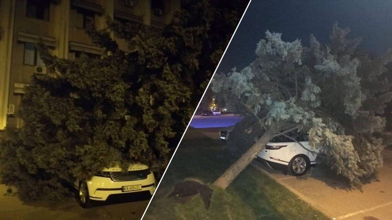 Відшкодування не буде: біля Одеської ОДА ялина впала на неправильно припаркований Range Rover